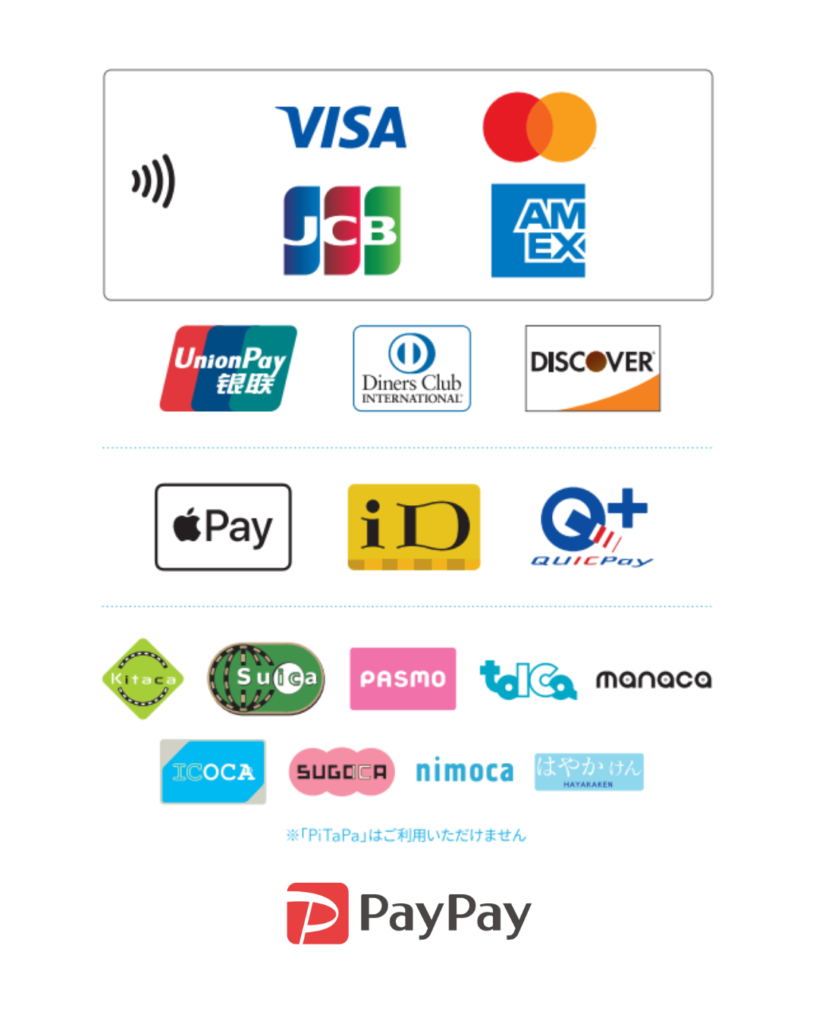 以下のブランドに対応しています。・クレジットカード:VISA / Mastercard / JCB / Amex / Diners / Discover