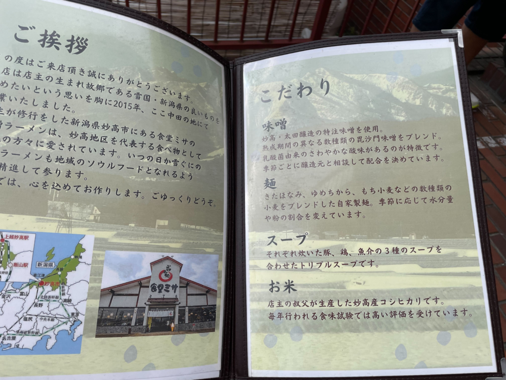 外で待っている間、店員さんから拘りポイントがギッシリ書かれたメニュー表が渡されました!