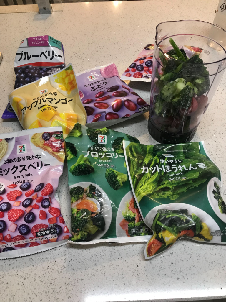 料理経験ほぼ0の僕ですが、「スムージーくらい自分で作れそうだな」と思い、セブンで冷凍フルーツ買って作ってみましたー!